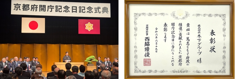 株式会社木下グループ(本社:東京都新宿区、代表取締役社長 兼 グループCEO:木下直哉)は、令和7年6月19日(木)に開催された「開庁記念日記念式典」において、京都府より篤志者表彰を受けました。