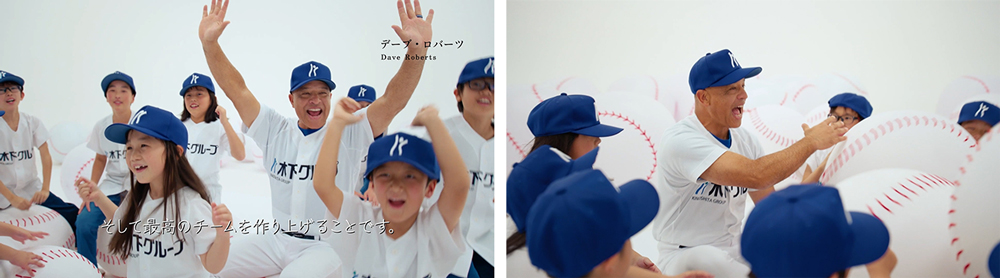 監督として選手一人ひとりと向き合い続けてきたロバーツ氏の姿勢と、当社が大切にしてきた「人に寄り添う」という思いを重ね合わせ、ロバーツ監督が子供たちと触れ合うシーンを冒頭と最後に取り入ることでCM全体のメッセージを表現しています。