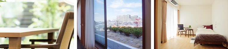 最上階には横長設計の居室を5つ設けています。間口は他の居室と変わらないながら、室内の奥まで自然光が届く明るい空間を実現しました。時間帯による光の移ろいを感じやすく、日中も照明に頼りすぎない環境づくりに配慮。また、横方向にゆとりがあることで家具配置の自由度が高く、これまでの暮らしに近いレイアウトを可能にしています。